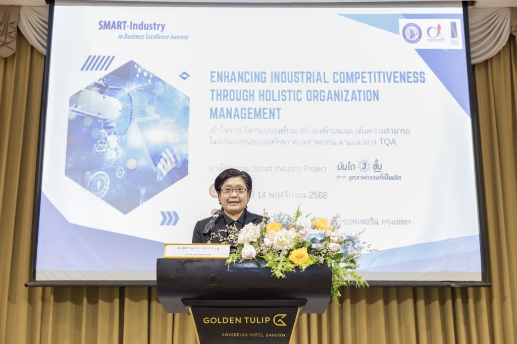 กระทรวงอุตสาหกรรมโดยสำนักงานรางวัลคุณภาพแห่งชาติ สถาบันเพิ่มผลผลิตแห่งชาติ จัดงานสัมมนา “Enhancing Industrial Competitiveness through Holistic Organizational Management” การบริหารจัดการองค์กรแบบองค์รวม เพื่อเพิ่มขีดความสามารถในการแข่งขันของภาคอุตสาหกรรม ภายใต้กิจกรรม SMART Industry Project ประจำปี 2568 เมื่อวันศุกร์ที่ 14 พฤศจิกายน 2568 ณ ห้องปาริชาติ โรงแรมโกลเด้น ทิวลิป ซอฟเฟอริน