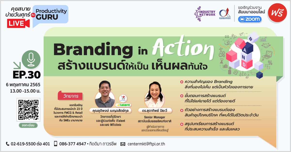 EP.30 วันที่ 6 พ.ค. 65 นี้ ตอน Branding in Action : สร้างแบรนด์ให้เป็น เห็นผลทันใจ